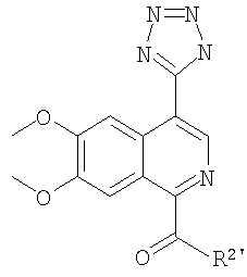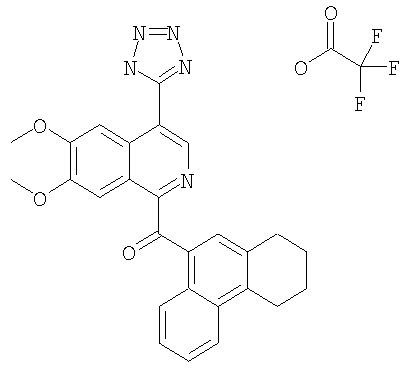 Указанное соединение получали в виде твердого вещества аналогично тому, как описано в примере 1, но при замене 2-нафтальдегида (0,26 ммоля) на 7-метил-2-нафтальдегид (0,26 ммоля). МС-ЖХ: (m/е) рассч. для C24H19N5O3 426 (МН+), найд. 426. Пример 9 Трифторацетат [6,7-диметокси-4-(1Н-тетразол-5-ил)изохинолин-1-ил]хинолин-8-илметанона Указанное соединение получали в виде твердого вещества аналогично тому, как описано в примере 1, но при замене 2-нафтальдегида (0,26 ммоля) на 8-хинолинкарбоксальдегид (0,26 ммоля). МС-ЖХ: (m/е) рассч. для С22Н16Н6О3 413(MH+), найд.413. Пример 10 Трифторацетат [6,7-диметокси-4-(1Н-тетразол-5-ил)изохинолин-1-ил](1,2,3,4-тетрагидрофенантрен-9-ил)метанона Указанное соединение получали в виде твердого вещества аналогично тому, как описано в примере 1, но при замене 2-нафтальдегида (0,26 ммоля) на 9-(1,2,3,4-тетрагидрофенантренкарбоксальдегид) (0,26 ммоля). МС-ЖХ: (m/е) рассч. для C27H23N5O3 466 (МН+), найд. 466. Пример 11 Трифторацетат [6,7-диметокси-4-(1Н-тетразол-5-ил)изохинолин-1-ил](2-метоксинафталин-1-ил)метанона