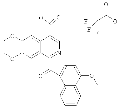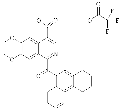 Указанное соединение получали в виде твердого вещества аналогично тому, как описано в примере 12, но при замене 4-диметиламино-1-нафтальдегида (0,26 ммоля) на 4-метокси-1-нафтальдегид (0,26 ммоля). МС-ЖХ: (m/е) рассч. для C24H19NO6 418 (МН+), найд. 418. Пример 14 Трифторацетат 6,7-диметокси-1-(1,2,3,4-тетрагидрофенантрен-9-карбонил)изохинолин-4-карбоновой кислоты