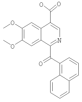 Указанное соединение получали в виде твердого вещества аналогично тому, как описано в примере 12, но при замене 4-диметиламино-1-нафтальдегида (0,26 ммоля) на 9-(1,2,3,4-тетрагидрофенантренкарбоксальдегид) (0,26 ммоля). МС-ЖХ: (m/е) рассч. для C27H23NO5 442 (МН+), найд. 442. Пример 15 6,7-Диметокси-1-(нафталин-1-карбонил)изохинолин-4-карбоновая кислота