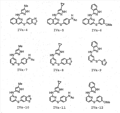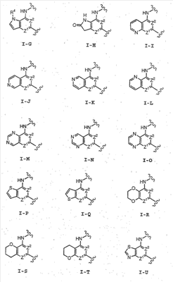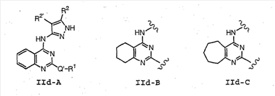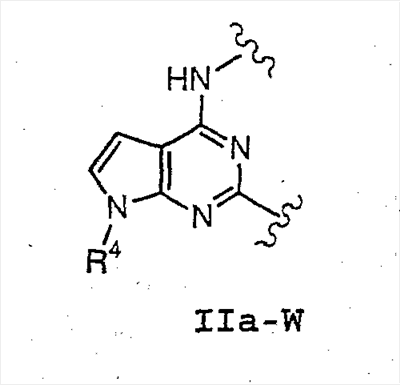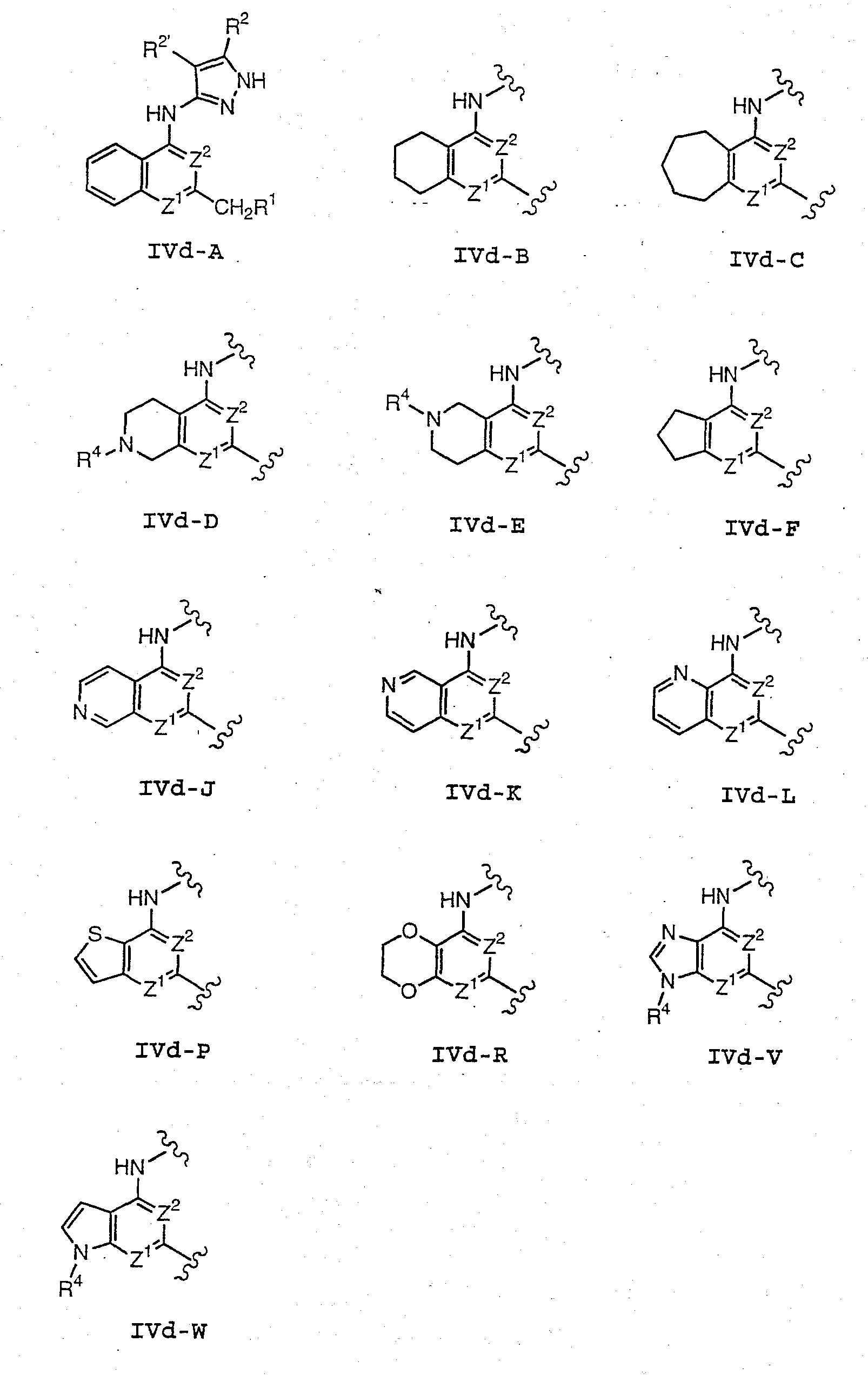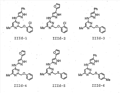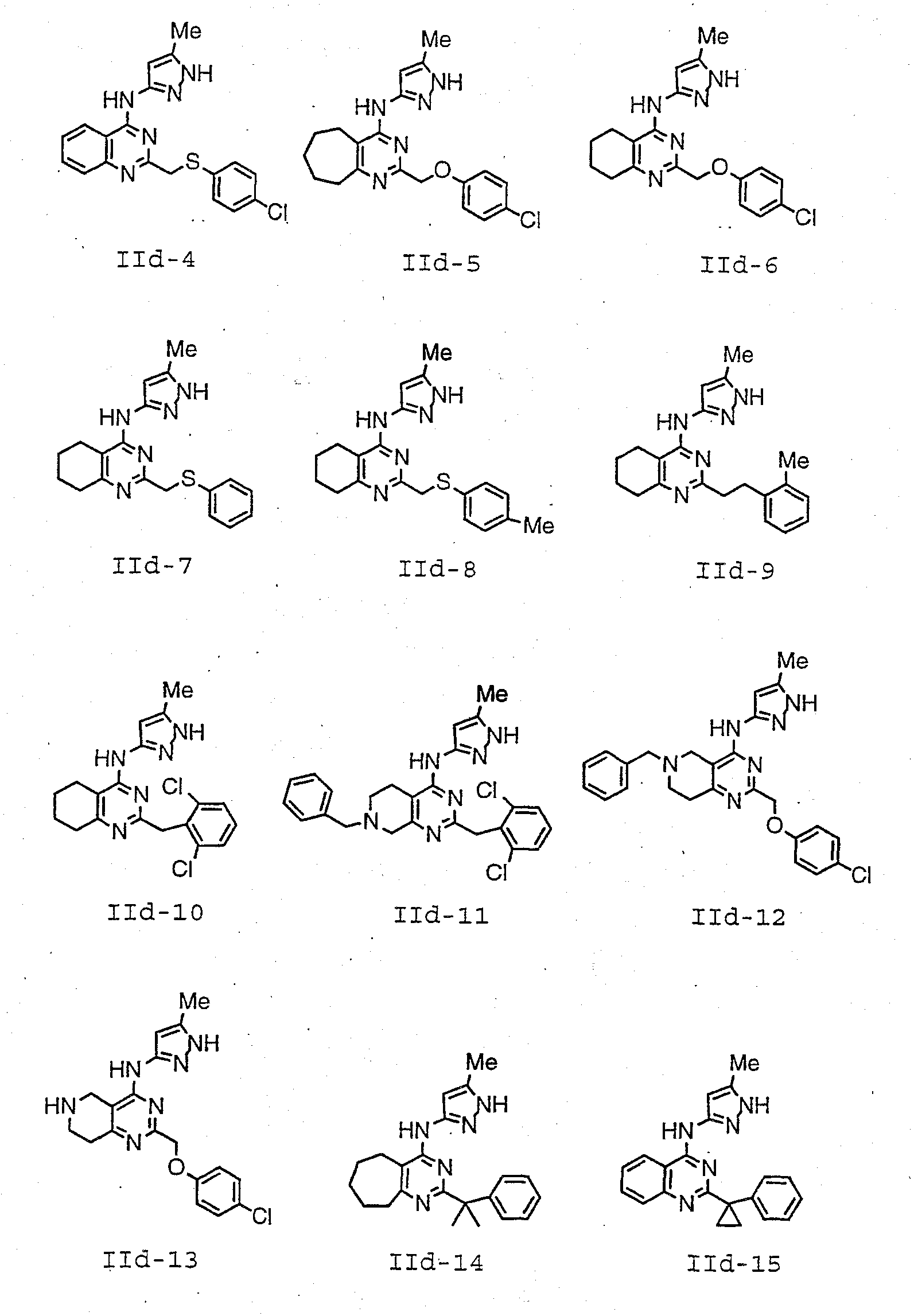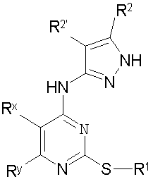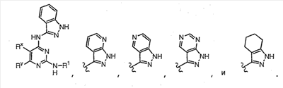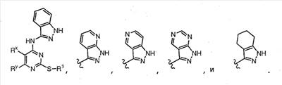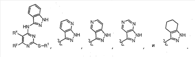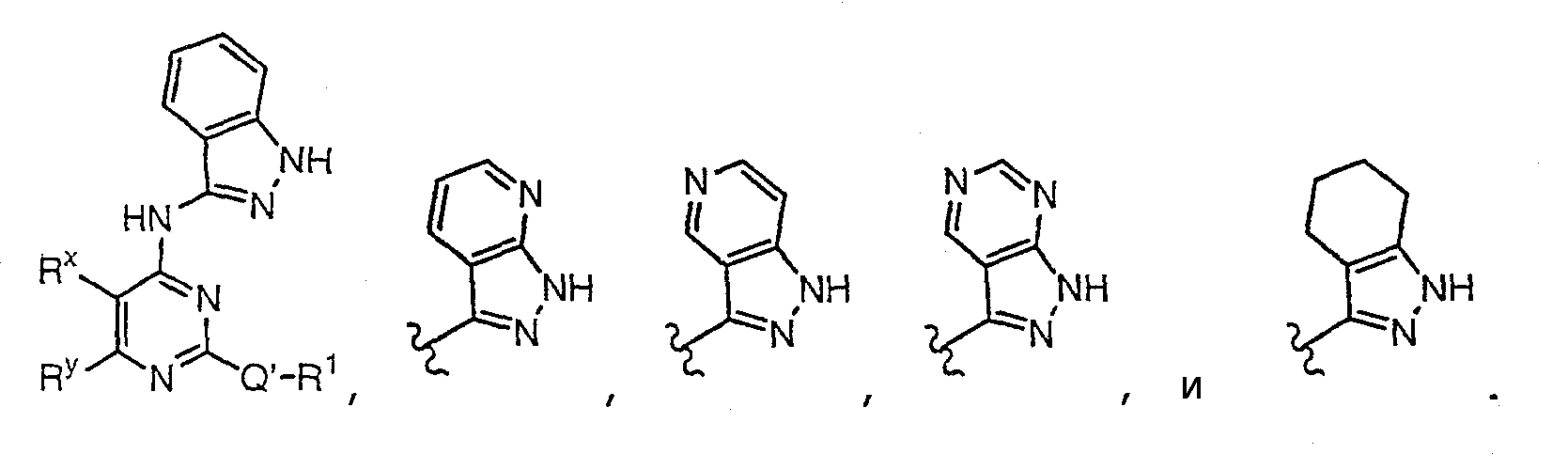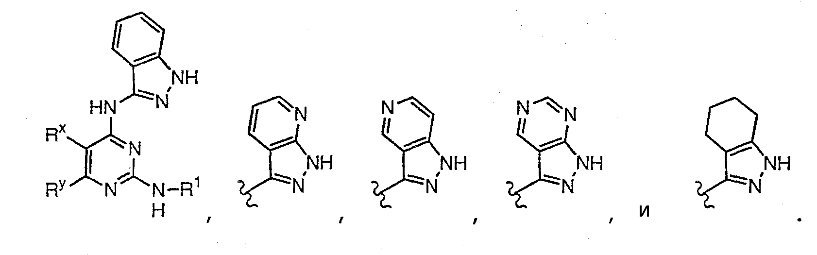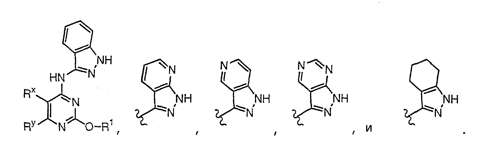 ПЕРЕКРЕСТНАЯ ССЫЛКА НА РОДСТВЕННЫЕ ЗАЯВКИ Данная заявка притязает на приоритет по предварительной заявке на патент США 60/257887, поданной 21 декабря 2000 г., и предварительной заявке на патент США 60/286949, поданной 27 апреля 2001 г., содержания которых включены в данное описание в виде ссылки. ОБЛАСТЬ ТЕХНИКИ, К КОТОРОЙ ОТНОСИТСЯ ИЗОБРЕТЕНИЕ Настоящее изобретение относится к области медицинской химии и касается соединений, которые являются ингибиторами протеинкиназы, композиций, содержащих такие соединения, и способов их применения. В частности, настоящее изобретение относится к соединениям, которые являются ингибиторами протеинкиназы Aurora-2. Изобретение касается также способов лечения связанных с указанными протеинкиназами заболеваний, в частности заболеваний, связанных с Aurora-2, таких как рак. ПРЕДПОСЫЛКИ СОЗДАНИЯ ИЗОБРЕТЕНИЯ Поиску новых терапевтических средств в последнее время в значительной степени способствовало лучшее понимание структуры ферментов и других биомолекул, связанных с определенными заболеваниями. Важным классом ферментов, являющихся предметом широких исследований, являются протеинкиназы. Протеинкиназы служат посредниками внутриклеточного преобразования сигналов. Осуществляют они это путем переноса фосфорила от нуклеозидтрифосфата к акцептору белков, входящему в путь передачи сигналов. Существует много киназ и путей, посредством которых внеклеточные и другие раздражители вызывают разнообразные клеточные ответные реакции, имеющие место в клетке. Примеры таких раздражителей включают сигналы окружающей среды и химического напряжения (например, осмотический удар, тепловой удар, ультрафиолетовое излучение, бактериальный эндотоксин, Н2О2), цитокины (например, интерлейкин-1 (IL-1) и фактор некроза опухоли Многие заболевания связаны с аномальными клеточными ответными реакциями, инициируемыми событиями, опосредованными протеинкиназой. Указанные заболевания включают аутоиммунные заболевания, воспалительные заболевания, нейрологические и нейродегенеративные заболевания, рак, сердечно-сосудистые заболевания, аллергии и астму, болезнь Альцгеймера или гормональные заболевания. Поэтому в медицинской химии были приложены значительные усилия, чтобы найти ингибиторы протеинкиназы, эффективные в качестве лекарственных средств. Aurora-2 представляет собой серин/треонинпротеинкиназу, причастную к возникновению у человека злокачественной опухоли, такой как рак толстой кишки, рак молочной железы и другие солидные опухоли. Полагают, что указанная киназа участвует в актах фосфорилирования белка, регулирующих клеточный цикл. В частности, Aurora-2 может играть роль в управлении правильным расщеплением хромосом во время митоза. Разрегулирование клеточного цикла может привести к пролиферации клеток и другим нарушениям. Установлено, что в ткани злокачественной опухоли толстой кишки человека чрезмерно выражен белок Aurora-2. Смотри Bischoff et al., EMBO J., 1998, 17, 3052-3065; Schumacher et al., J. Cell Biol., 1998, 143, 1635-1646; Kimura et al., J. Biol. Chem., 1997, 272, 13766-13771. Гликогенсинтаза-киназа-3 (GSK-3) представляет собой серин/треонинпротеинкиназу, состоящую из В опосредованном GSK-3 пути метаболизма, подходящем для лечения диабета типа II, вызванная инсулином передача сигналов ведет к клеточному усвоению глюкозы и синтезу гликогена. Согласно этому метаболизму GSK-3 является н