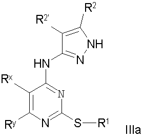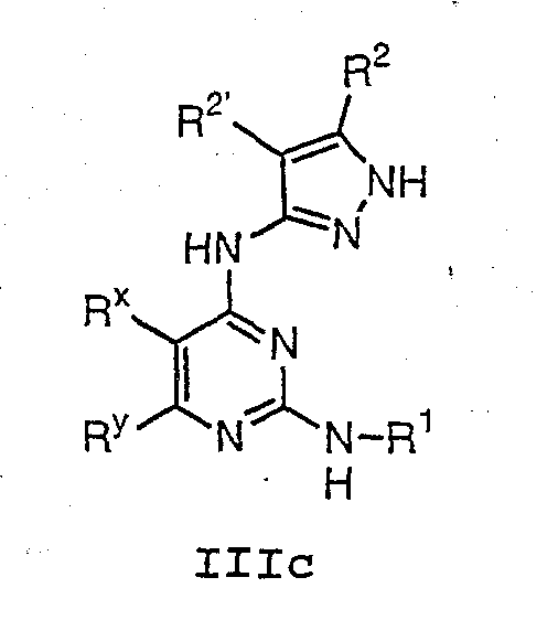 Настоящее изобретение относится к новым производным пиразола формулы (IIIa), где R1 представляет собой Т-(кольцо D), где кольцо D представляет собой нафтил или фенил, необязательно замещенные -R5; Rx Ry R2, R2′ и R5 являются такими, как определено в формуле изобретения, а также к фармацевтической композиции их содержащей. Соединения являются ингибиторами протеинкиназ, таких как Aurora-2, GSK-3 или Src и пригодны для использования в способах лечения заболеваний, опосредованных указанными протеинкиназами, таких как рак, диабет и болезнь Альцгеймера. Соединения согласно изобретению также могут использоваться в способах ингибирования продукции гиперфосфорилированного белка Tau и ингибирования фосфорилирования