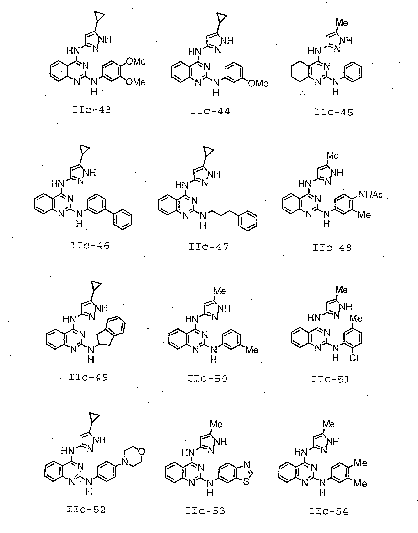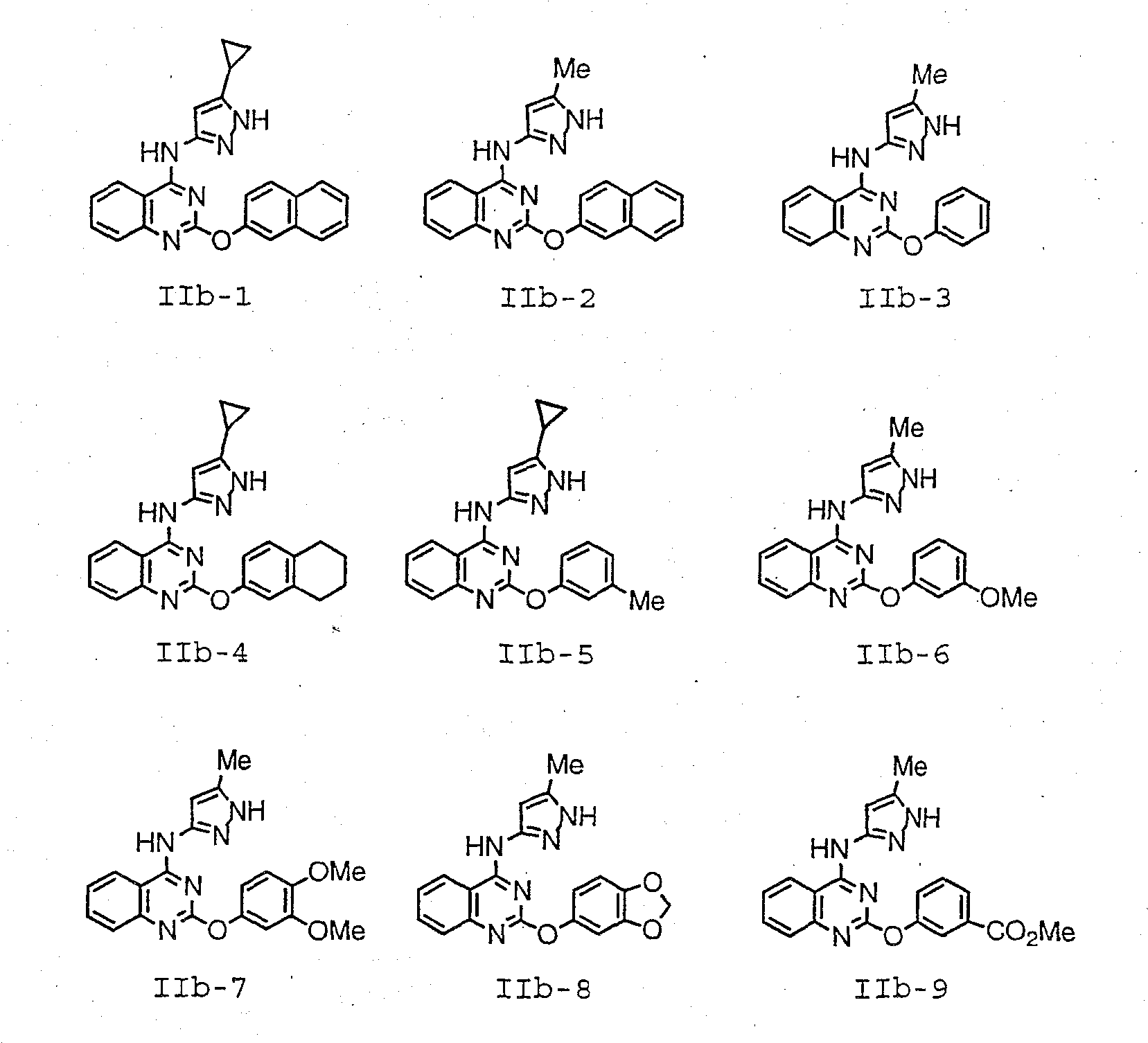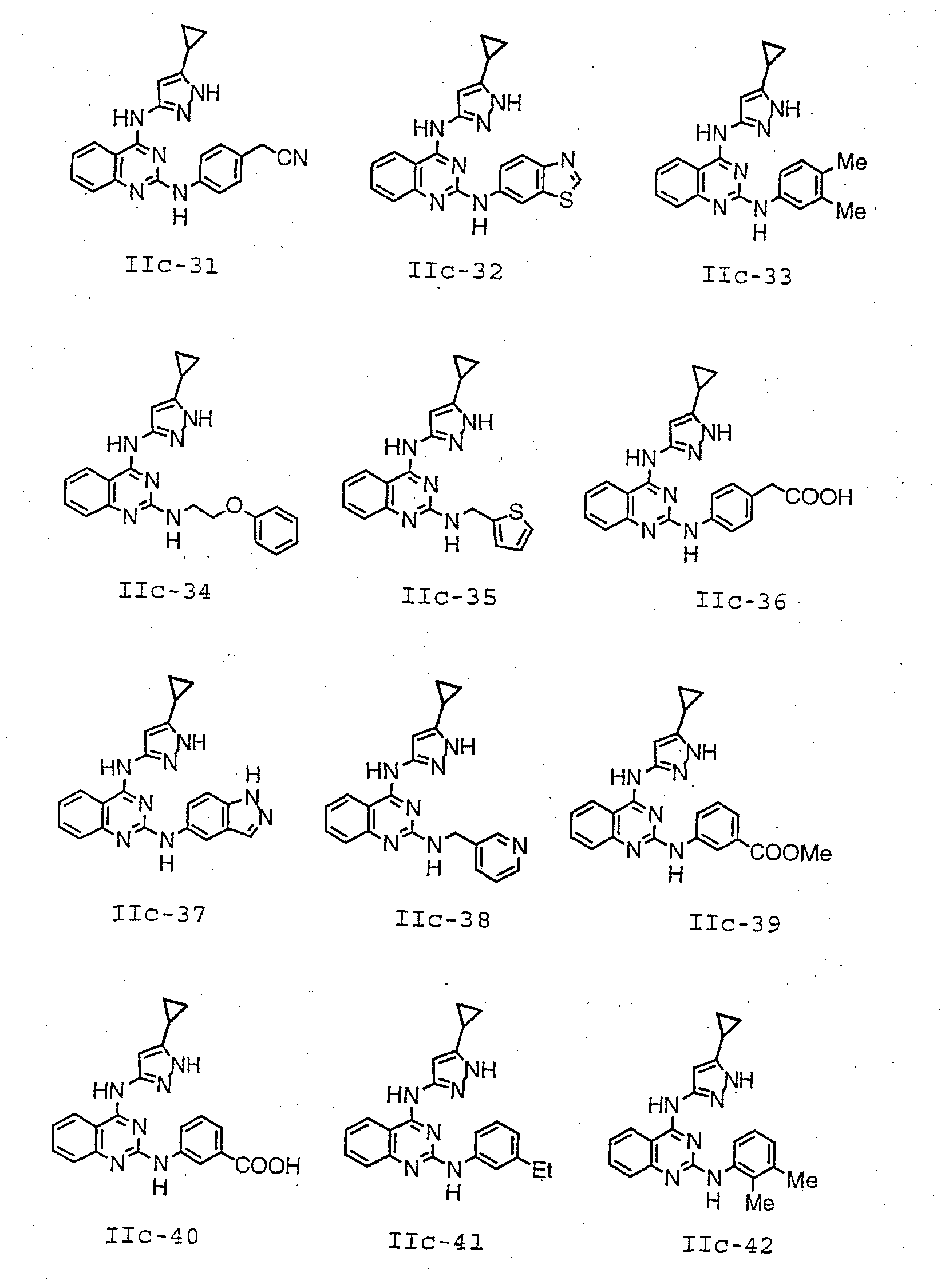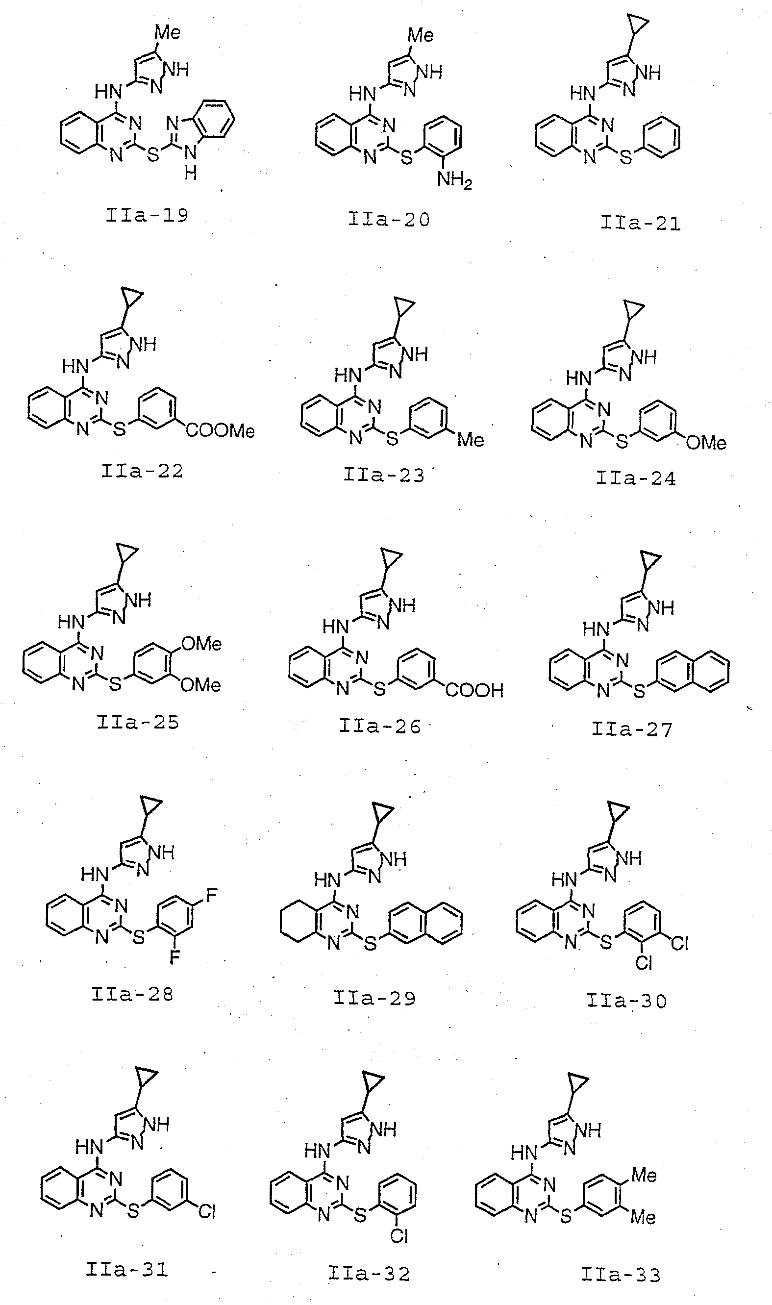 10-5 моль), а затем 1 М бензилмагнийхлорид в ТГФ (2,15 мл, 2,15 ммоль). Раствор нагревают при 50°С в течение 20 часов и затем реакционную смесь гасят водным NH4Cl и продукт экстрагируют этилацетатом. Выпаривают растворитель и остаток очищают флэш-хроматографией с получением требуемого (2-бензилхиназолин-4-ил)-(5-циклопропил-2Н-пиразол-3-ил)амина.