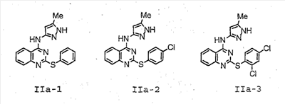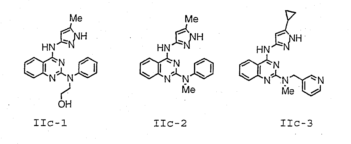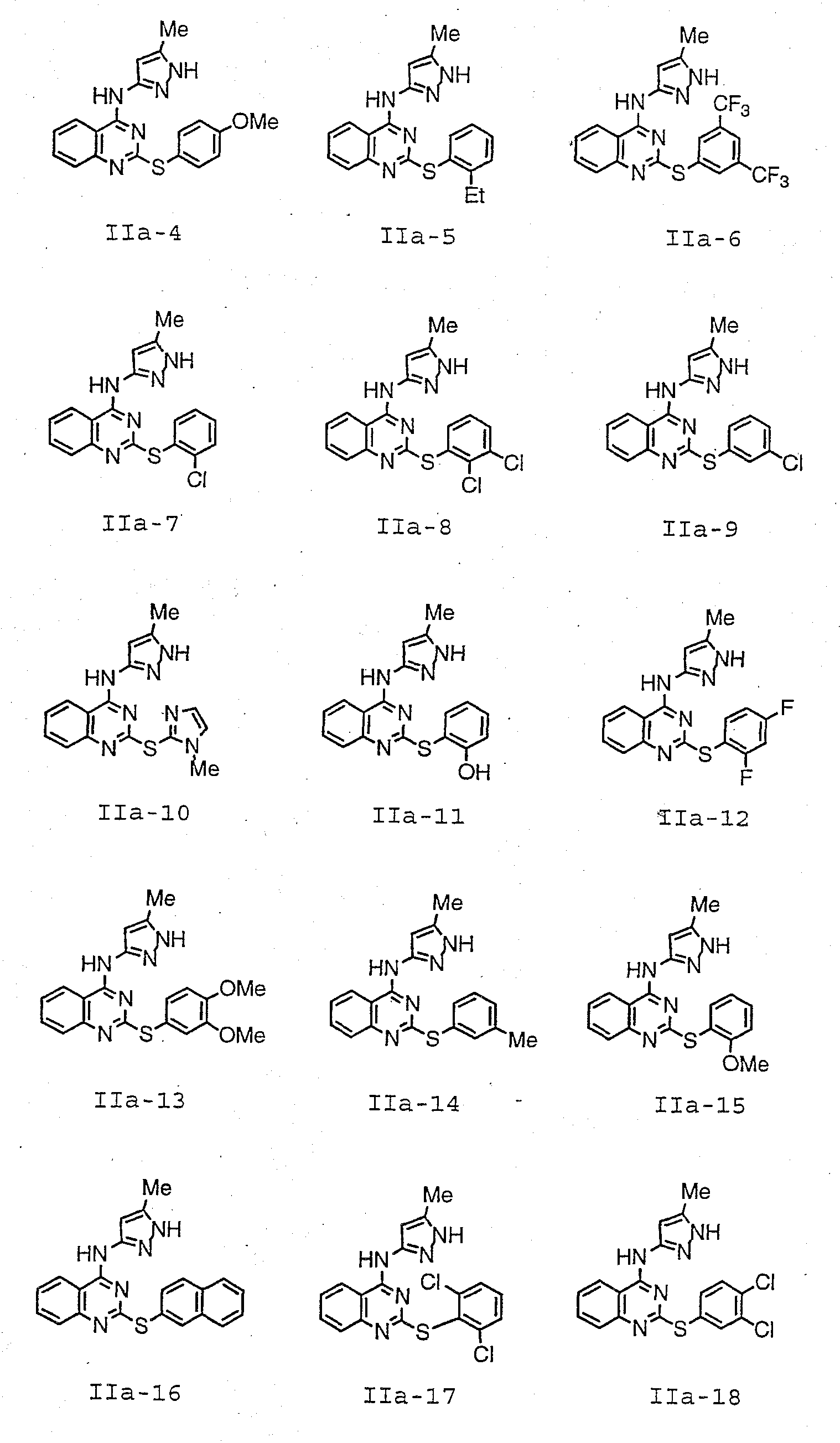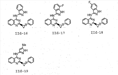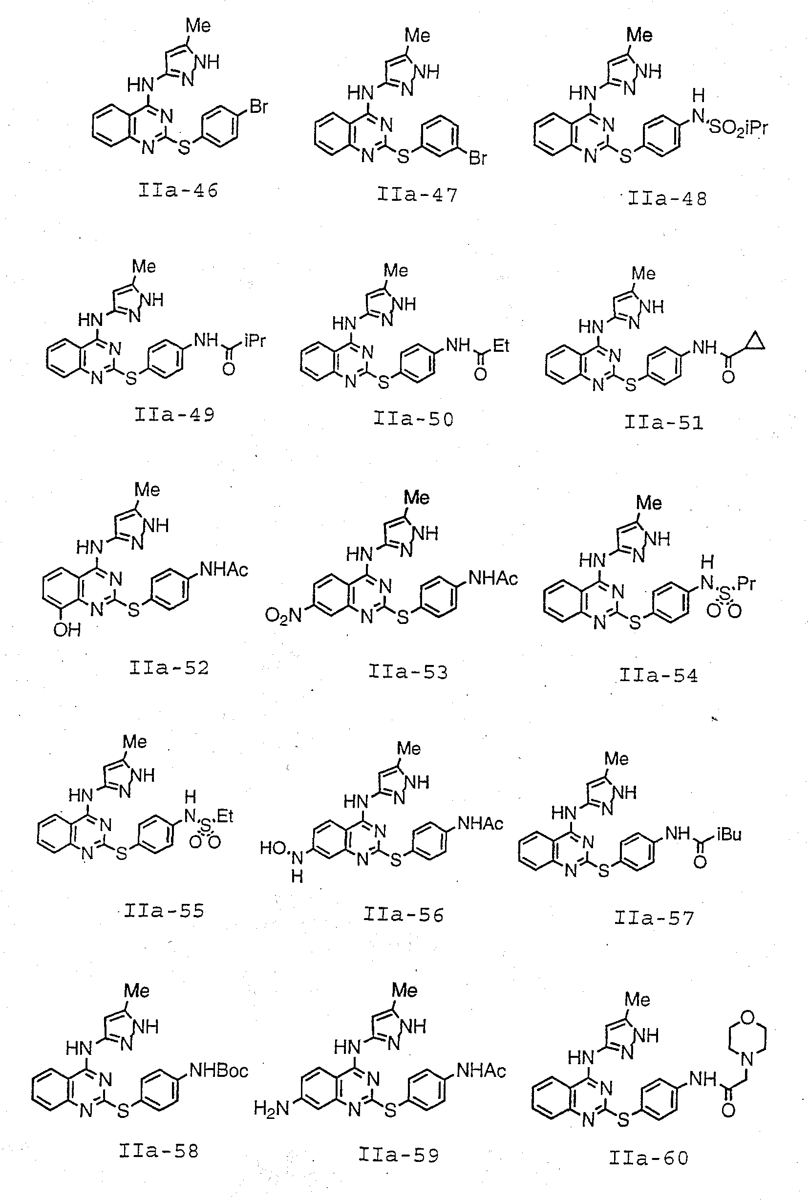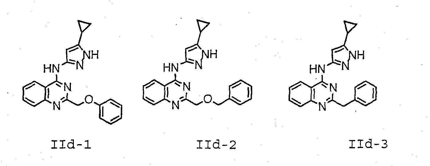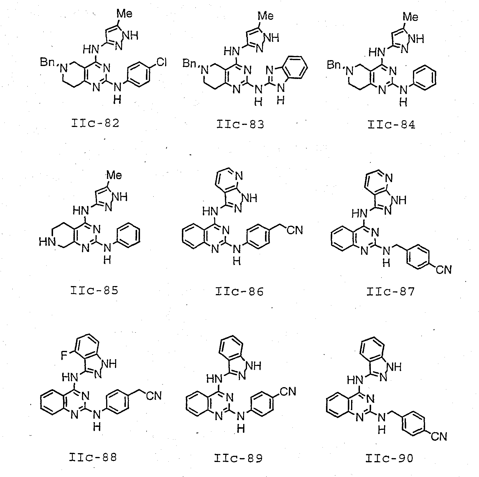 10-5 моль), а затем 1 М бензилмагнийхлорид в ТГФ (2,15 мл, 2,15 ммоль). Раствор нагревают при 50°С в течение 20 часов и затем реакционную смесь гасят водным NH4Cl и продукт экстрагируют этилацетатом. Выпаривают растворитель и остаток очищают флэш-хроматографией с получением требуемого (2-бензилхиназолин-4-ил)-(5-циклопропил-2Н-пиразол-3-ил)амина.