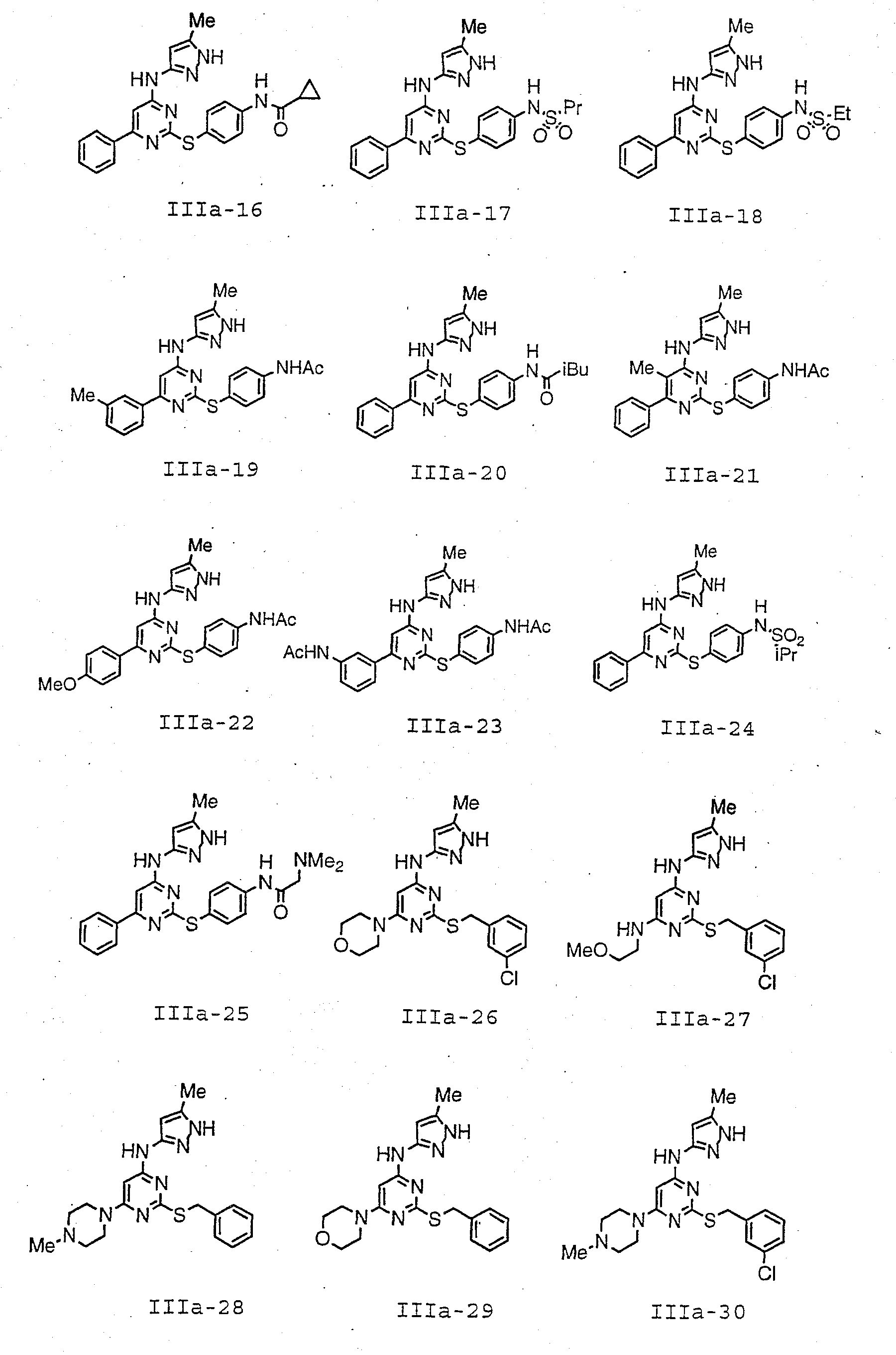 1. Соединение формулы IIIa: 2. Соединение по п.1, где указанное соединение имеет один или несколько признаков, выбранных из следующих: 3. Соединение по п.1, где указанное соединение имеет один или несколько признаков, выбранных из следующих: 4. Соединение по п.3, где Т представляет собой связь. 5. Соединение по п.4, где кольцо R3 выбрано из морфолинила, пирролидинила, пиперидинила, и пиперазинила. 6. Соединение по п.5, где кольцо R3 представляет собой пиперазинил. 7. Соединение по п.6, где кольцо D представляет собой фенил, замещенный -N(R4)С(O)С3-6циклоалкилом. 8. Соединение, выбранное из группы, включающей: 9. Фармацевтическая композиция для ингибирования GSK-3, Aurora или Src, содержащая соединение по любому из пп.1-8 в эффективном количестве и фармацевтически приемлемый носитель. 10. Применение композиции по п.9 для производства лекарственного средства для введения человеку. 11. Способ ингибирования активности AURORA-2, GSK-3 или Src в биологическом образце, заключающийся в контактировании указанного биологического образца с соединением по любому из пп.1-8. 12. Способ ингибирования активности AURORA-2 у пациента, включающий стадию введения указанному пациенту композиции по п.9. 13. Способ лечения Aurora-2-опосредованного заболевания, включающий введение пациенту, нуждающемуся в таком лечении, терапевтически эффективного количества композиции по п.9. 14. Способ по п.13, в котором указанное заболевание выбрано из рака толстой кишки, молочной железы, желудка или яичника. 15. Способ по п.14, включающий также введение дополнительного лекарственного средства выбранного из химиотерапевтических средств для лечения рака. 16. Способ ингибирования активности GSK-3 у пациента, включающий стадию введения указанному пациенту композиции по п.9. 17. Способ лечения GSK-3-опосредованного заболевания, включающий введение пациенту, нуждающемуся в таком лечении, терапевтически эффективного количества композиции по п.9. 18. Способ по п.17, в котором указанное GSK-3-опосредованное заболевание выбрано из диабета, болезни Альцгеймера, болезни Хантингтона, болезни Паркинсона, обусловленной СПИД-ом деменции, бокового амиотрофического склероза (AML), рассеянного склероза (MS), шизофрении, гипертрофии сердечной мышцы, реперфузии с ишемией и облысения. 19. Способ по п.17, в котором указанным GSK-3-опосредованным заболеванием является диабет. 20. Способ усиления синтеза гликогена или снижения уровня глюкозы в крови у пациента, нуждающегося в этом, включающий введение указанному пациенту терапевтически эффективного количества композиции по п.9. 21. Способ ингибирования продукции гиперфосфорилированного белка Tau у пациента, включающий введение пациенту, нуждающемуся в этом, терапевтически эффективного количества композиции по п.9. 22. Способ ингибирования фосфорилирования 23. Способ ингибирования активности Src у пациента, включающий стадию введения указанному пациенту композиции по п.9. 24. Способ лечения Src-опосредованного заболевания, включающий введение пациенту, нуждающемуся в таком лечении, терапевтически эффективного количества композиции по п.9.