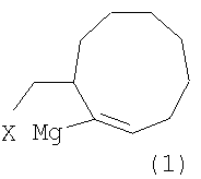 Предлагаемое изобретение относится к способам получения новых магнийорганических соединений, конкретно к способу получения (9-этил-1-циклононенил)магнийгалогенидов общей формулы (1):