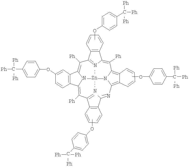 Поставленная задача решена мезо-трифенилтетра-[4-(п-трифенилметилфеноксибензо)]моноазапорфиринатом цинка формулы