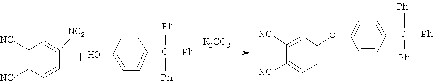 Смесь 2.6 г (0.015 моль) 4-нитрофталонитрила, 6.9 г 4-трифенилметилфенола, 3.0 г