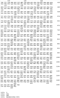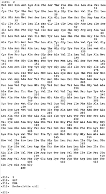 Кроме того, варианты белков, кодируемых генами ydiN и ydiB, могут иметь гомологию не менее 80%, предпочтительно не менее 90% и наиболее предпочтительно не менее 95% по отношению к полной аминокислотной последовательности, показанной в Перечне последовательностей под номерами 2 (SEQ ID No: 2) и 4 (SEQ ID No: 4) соответственно. Активность белка YdiB может быть измерена методом, описанным в (Benach J., et. al., J Biol Chem. 23; 278(21): 19176-82 (2003) или Michel G., et al. (J Biol Chem. 23; 278(21):19463-72(2003)).