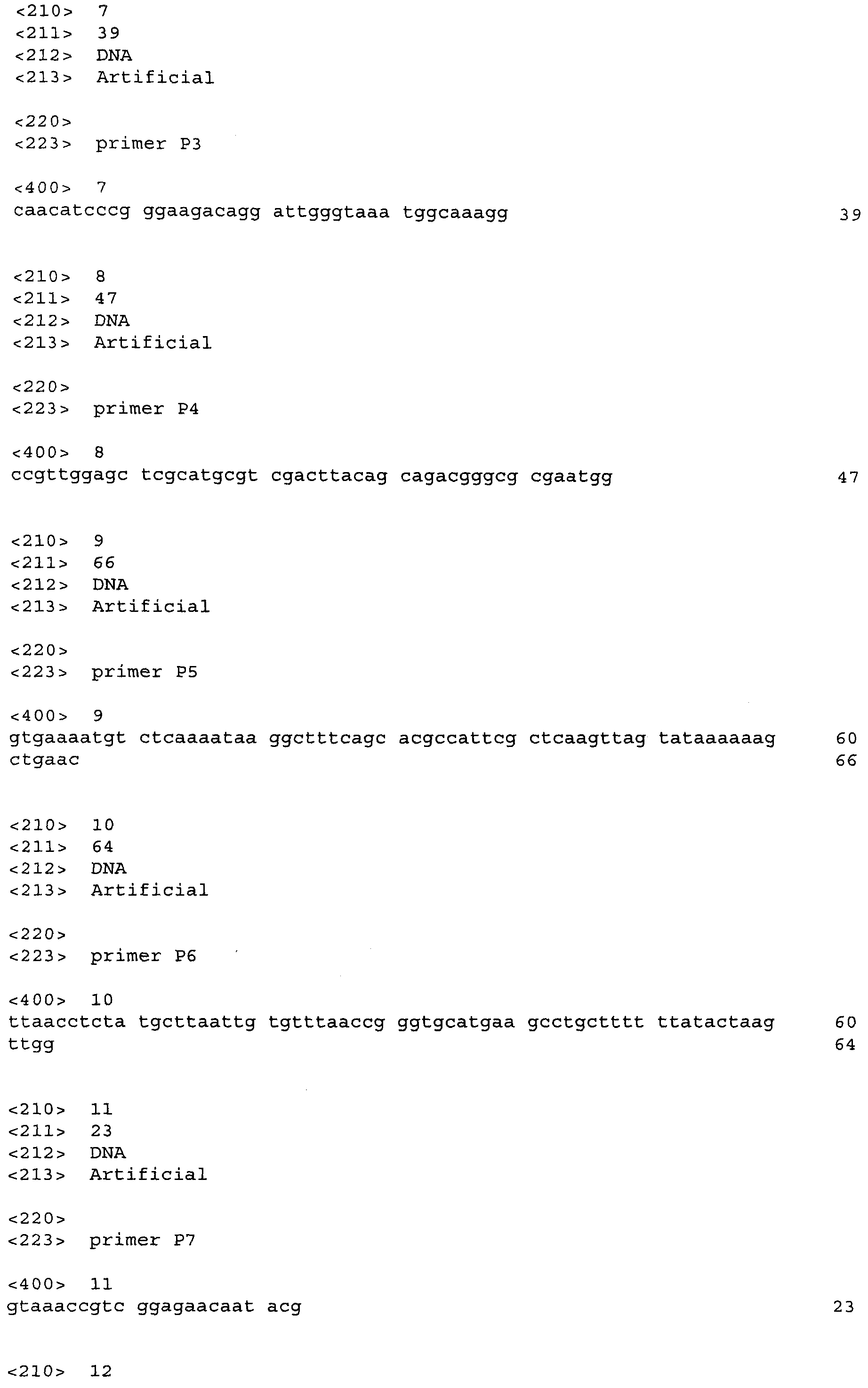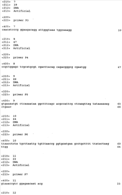 Далее ген устойчивости к Cm (ген cat) может быть элиминирован из хромосомы штамма AJ12739- ydiN::cat с использованием int-xis системы. С этой целью штамм AJ12739- ydiN::cat может быть трансформирован плазмидой pMWts-Int/Xis (WO 2005010175). Селекция трансформированных клонов может быть произведена с использованием среды LB, содержащей ампициллин (100 мкг/мл). Чашки могут быть инкубированы в течение ночи при 30°С. Ген cat может быть удален из трансформированных клонов путем выращивания отдельных колоний при 37°С (при этой температуре репрессор CIts в некоторой мере инактивируется, тогда как гены int/xis активируются) с последующей селекцией вариантов CmSApR. Удаление гена cat из хромосомы штаммов может быть подтверждено при помощи ПЦР. Локус-специфичные праймеры Р7 (SEQ ID NO: 11) и Р8 (SEQ ID NO: 12) могут быть использованы для такого подтверждения путем ПЦР. Условия проведения ПЦР могут быть такими же, как описано выше. Продукт ПЦР, полученный в случае клеток с удаленным геном cat, должен быть длиной в 294 п.н. Таким образом, может быть получен штамм AJ12739- ydiN, в котором инактивирован ген ydiN и из которого удален ген cat.