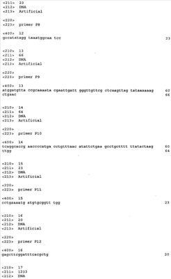 Методы приготовления плазмидной ДНК, рестрикции и лигирования ДНК, трансформации, выбора нуклеотидов в качестве праймера и т.п. могут быть обычными методами, известными специалисту в этой области. Эти методы описаны, например, в Sambrook, J., Fritsch, E.F., and Maniatis, Т., “Molecular Cloning: A Laboratory Manual, Second Edition”, Cold Spring Harbor Laboratory Press (1989).