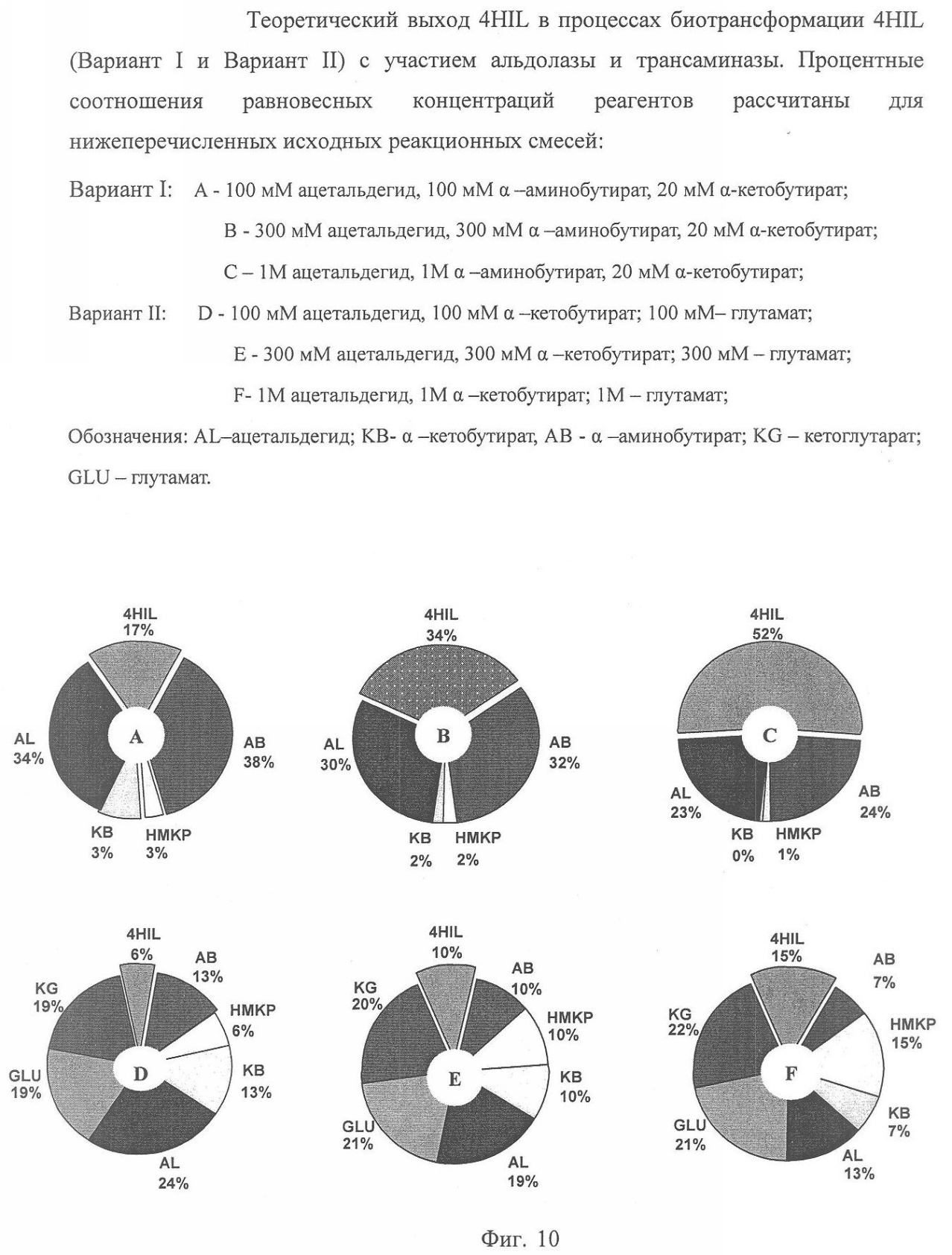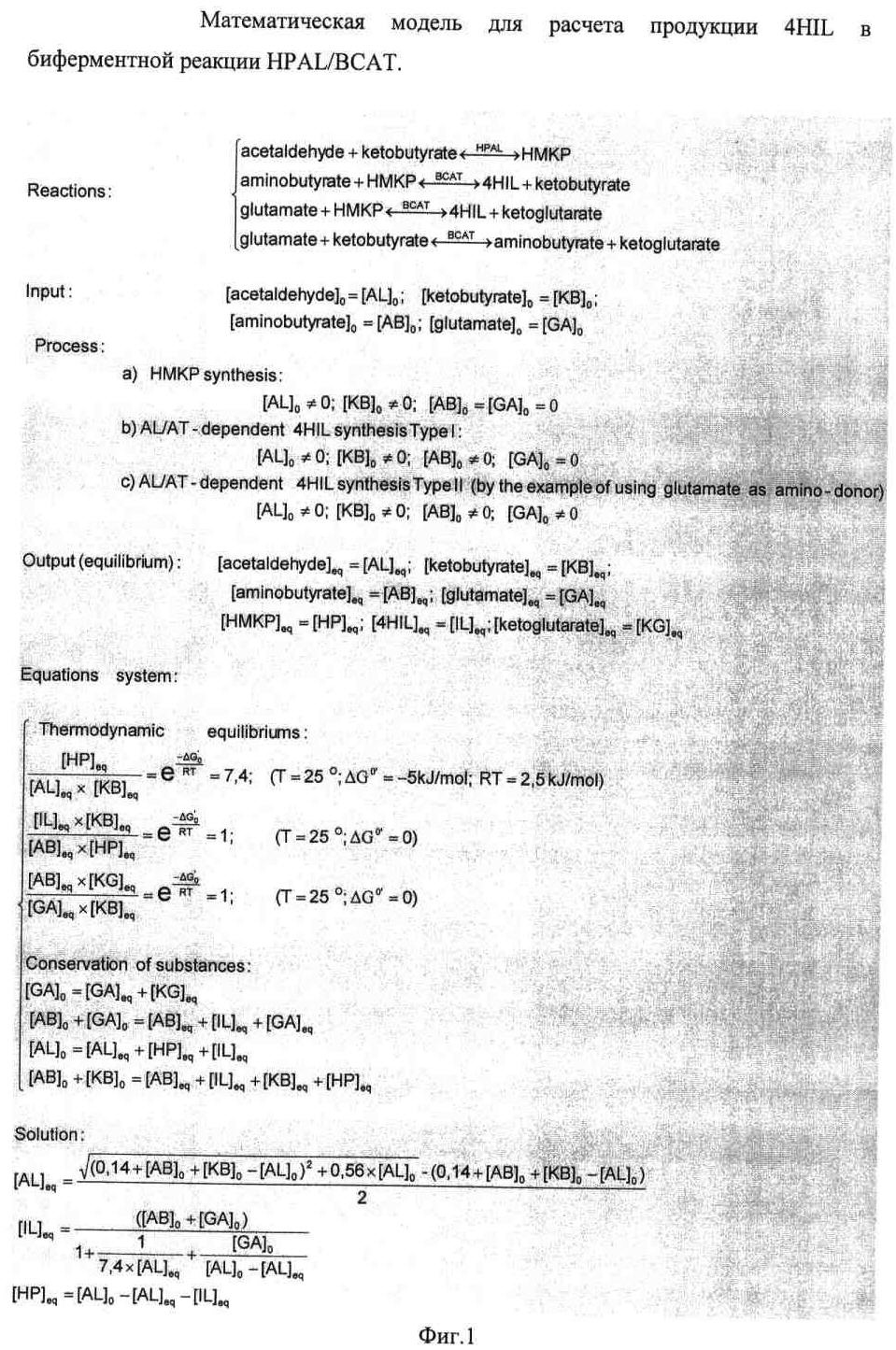1. Способ получения 4-гидроксиизолейцина или его соли, включающий стадии взаимодействия биокатализатора с ацетальдегидом, -аминомасляной кислотой и -кетомасляной кислотой в водном растворе, при этом указанный катализатор активно катализирует реакцию получения 4-гидрокси-L-изолейцина из ацетальдегида и -кетомасляной кислоты в присутствии -аминомасляной кислоты как донора аминогруппы; и выделения 4-гидроксиизолейцина.