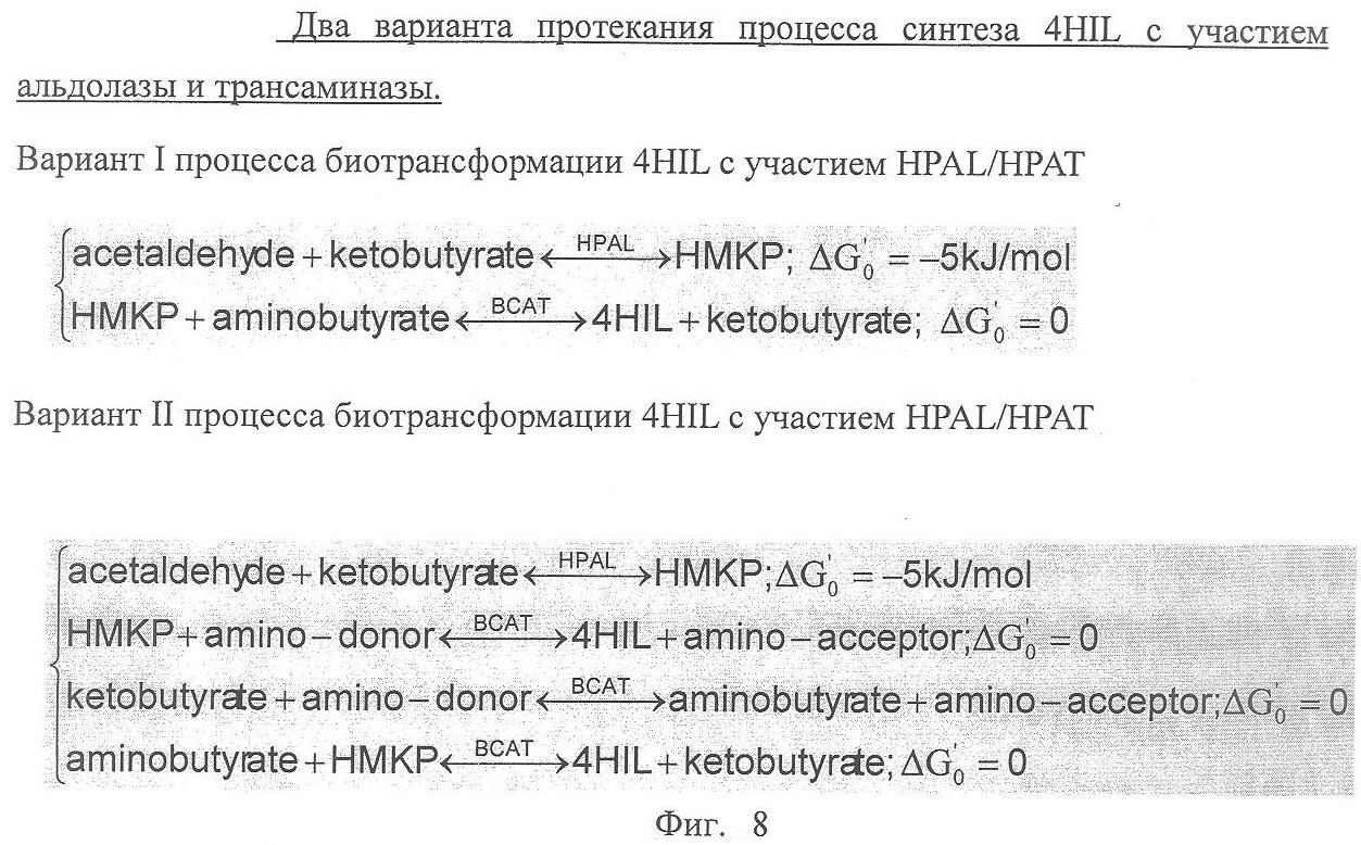 8. Способ по п.7, отличающийся тем, что экспрессия альдолазы и/или аминотрансферазы усилена путем изменения последовательности, контролирующей экспрессию гена, кодирующего указанные альдолазу и/или аминотрансферазу, или путем увеличения количества копий гена, кодирующего указанные альдолазу и/или аминотрансферазу.