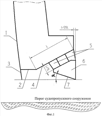 Устойчивое положение батопорта обеспечивается на малых расстояниях от порога судопропускного сооружения, что позволяет батопорту иметь устойчивое положение на пороге при наличии зазора между батопортом и порогом при заданной нагрузке.