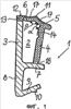 Показанный на фиг.8 вариант отличается от показанного на фиг.6 варианта в основном тем, что в данном случае задняя стенка 3 с одной своей стороны (правой на фиг.8) выступает вбок за пределы основания 30 гарпунообразного профиля на меньшее расстояние, чем с другой своей стороны. С этой более короткой стороны к выступающей вбок части задней стенки примыкает поперечный участок 7, который, однако, в данном случае в отличие от показанных на фиг.6 и 7 вариантов отходит вверх от задней стенки 3 не перпендикулярно ей, а под тупым углом и на своем верхнем конце под острым углом примыкает к опорному участку 4, как это геометрически детально показано на фиг.8.