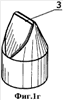 Известно буровое долото с клиновидными твердосплавными зубками, запрессовываемыми в отверстия на корпусе шарошек [1], принятое за аналог. Зубки долота показаны на фиг.1а-1г в общем виде и с формой последовательных поперечных сечений относительно вершины рабочей головки зубка (фиг.2а-2ж). Такие зубки имеют цилиндрическое основание 1 и клиновидную, выступающую над шарошкой, часть 2. Прямолинейная или криволинейная вершина 3 клиновидной части 2 является местом схождения двух граней. Для устранения причин концентрации высоких напряжений, способствующих сколам и поломкам зубков, на всех пересечениях поверхностей предусмотрены плавные переходы округления 4.