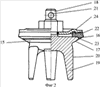 Резиновая манжета 22 закреплена одетой на хвостовик 18 тарелкой 24, зафиксированной гайкой 25, навинченной на резьбовой участок (на фиг.2 скрыт гайкой 25) у основания хвостовика 18.