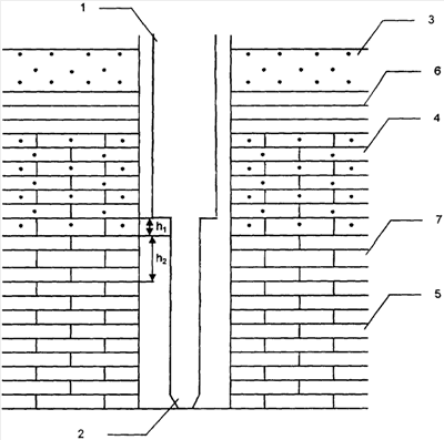 Длина – высота цементного кольца h складывается из его длины в нижней зоне продуктивного нефтенасыщенного пласта и зоне плотного непроницаемого пропластка, расположенного под продуктивным нефтенасыщенным пластом.