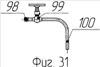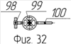 Двадцать шестой узел обвязки газовой скважины 26 (фиг.4) состоит из тройника 98 (фиг.31, 32), один конец которого соединен при помощи сварки с входным патрубком запорного проходного клапана 99, выходной патрубок которого по средством сварки соединен с отводом 100, выполненным в виде трубы, загнутой под углом 90°.