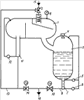 Кроме того. на сливной жидкостной линии установлен запорно-регулирующий клапан, а газовая линия сепаратора соединена с обводной линией от переключателя потока к коллектору и оснащена регулятором давления и датчиком гидростатического давления.