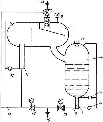 3. Устройство по п.2, отличающееся тем, что на сливной жидкостной линии установлен запорно-регулирующий клапан.