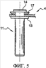 Фиг.4, 5 показывают два варианта осуществления этих средств распределения нагрузки, которые образованы из плоских шайб 16, 17 с кольцевой внешней формой, показывающей осевое кольцеобразное отверстие 15, чей диаметр чуть больше, чем диаметр штифта 11. Толщина шайбы должна быть порядка одного миллиметра, и внешний диаметр шайбы не должен превышать диаметр фланца 13 штифта 11.