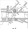 фиг.1 – осевой разрез, по плоскости, проходящей через ось турбореактивного двигателя, нижней части компрессора и диффузора, который показывает расположение полости, сообщающейся с основанием камеры, и в которую забирается воздух для кабины самолета, и установку уплотнительной прокладки, согласно известному уровню техники, между этой полостью и трубкой первичного потока;