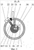 Роторные поршни 6, 7 установлены на оси 3 с возможностью вращения относительно оси 3, вращения роторного поршня 6 вместе с осью 3, вращения роторного поршня 7 вместе с осью 3, вращения роторных поршней 6, 7 вместе с осью 3 с помощью фиксаторов 26, 27 положения роторных поршней 6, 7. Роторные поршни 6, 7 разделяют первую тороидальную рабочую полость на камеру 10 сгорания топлива и выхлопную камеру 11. Роторные поршни 4, 5 установлены также на оси 3 с возможностью вращения относительно оси 3. Роторные поршни 4, 5 установлены также с возможностью вращения роторного поршня 4 вместе с осью 3, роторного поршня 5 вместе с осью 3, роторных поршней 4 и 5 вместе с осью 3. Роторные поршни 4, 5 совершают вращательное движение внутри второй рабочей полости, при жестком соединении с осью 3 с помощью фиксаторов 24 и 25 положения роторных поршней и разделяют вторую рабочую полость на всасывающую камеру 8 и компрессорную камеру 9. Роторные поршни 4, 5 выполнены в виде лопаток, приваренных к дискам с отверстиями для оси 3, и определяют одними широкими сторонами лопаток размер всасывающей камеры 8, а другими широкими сторонами лопаток определяют размер компрессорной камеры 9. Роторные поршни 6, 7 также выполнены в виде лопаток, приваренных к дискам с отверстиями для оси 3, и определяют одними широкими сторонами лопаток размер камеры 10 сгорания, а другими широкими сторонами лопаток – размер выхлопной камеры 11. Фиксатор 24 положения роторного поршня 4 и датчик 28 положения роторного поршня 4 установлены в роторном поршне 4 вблизи перегородки 2 и оси 3. Фиксатор 25 положения роторного поршня 5 и датчик 29 положения роторного поршня 5 установлены в роторном поршне 5 вблизи корпуса 1 и оси 3. Фиксатор 26 положения роторного поршня 6 и датчик 30 положения роторного поршня 6 установлены в роторном поршне 6 вблизи корпуса 1 и оси 3. Фиксатор 27 положения роторного поршня 7 и датчик 31 положения роторного поршня 7 установлены в роторном поршне 7 вблизи перегородки 2 и оси 3. При этом роторный поршень 4 выполнен с возможностью жесткого соединения с перегородкой 2 с помощью фиксатора 24 положения роторного поршня 4 по электрическому сигналу от датчика 28 положения роторного поршня 4. Роторный поршень 4 выполнен с возможностью снятия фиксации роторного поршня 4 относительно перегородки 2 и последующего жесткого соединения с осью 3 с помощью фиксатора 24 положения роторного поршня 4 по электрическому сигналу от датчика 29 положения роторного поршня 5 относительно корпуса 1 и перегородки 2. Роторный поршень 5 выполнен с возможностью жесткого соединения с корпусом 1 с помощью фиксатора 25 положения роторного поршня 5 по электрическому сигналу от датчика 29 положения роторного поршня 5. Роторный поршень 5 выполнен также с возможностью снятия фиксации роторного поршня 5 относительно корпуса 1 и последующего жесткого соединения с осью 3 с помощью фиксатора 25 положения роторного поршня 5 по электрическому сигналу от датчика 28 положения роторного поршня 4. Роторный поршень 6 выполнен с возможностью жесткого соединения с корпусом 1 с помощью фиксатора 26 положения роторного поршня 6 по электрическому сигналу от датчика 30 положения роторного поршня 6. Роторный поршень 6 выполнен также с возможностью снятия фиксации относительно корпуса 1 и последующего жесткого соединения с осью 3 с помощью фиксатора 26 положения роторного по