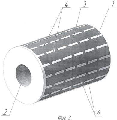 Приведем пример практической реализации патентуемой конструкции (Фиг.3). Топливная шашка (1) выполнена из баллиститного ТРТ. Бронирование заряда осуществлялось в соответствии с пат. RU 2298109. Разрыв бронирующих полос выполнялся в пределах 1,0 2,0 мм, при этом длина «секции» бронирующей полосы составляла ~ 100 мм.