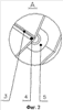 Смежные секторные кольца 2 скреплены между собой скобами 5, распределенными по длине каждой влагосборной щели 3. Скобы 5 обеспечивают прочность колена и оптимальную ширину щели 3. Влагозадерживающие пороги 3 выполняются в виде прутков или козырьков, приваренных к внутренней поверхности колена.