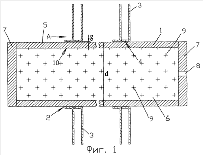 После введения трубы в отверстия 2 пластин, внутреннюю полость 6 трубы герметизируют – устанавливают, например, на концах трубы заглушки 7, по крайней мере, в одной из которых имеется отверстие 8 для введения в полость 6 трубы рабочего тела 9.
