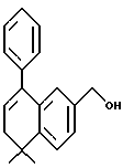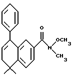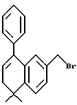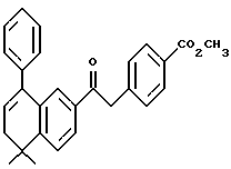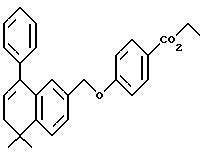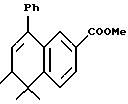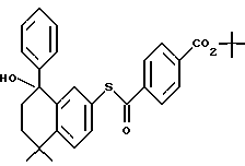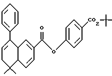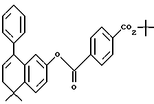 ПРИМЕР 454-[[(5,6-Дигидро-5,5-диметил-8-фенил-2-нафталенил)карбонил] окси] бензойная кислота (I10a) ![]() К раствору соединения I9a (203 мг, 0,480 ммоль) в метиленхлориде (5,00 мл) добавляли трифторуксусную кислоту (0,400 мл) при комнатной температуре. После 16-часового выдерживания добавляли 1 н. HCl (30 мл). Осадок собирали при помощи фильтрации под вакуумом, промывали 1 н. HCl и сушили на воздухе с получением 133 мг (выход 75%) указанного в заголовке соединения; 1H-ЯМР (ДМСО-d6): 8,05-7,31 (м, 12Н), 6,10 (т, J=4,6 Гц, 1Н), 2,39 (д, J=4,6 Гц, 2Н), 1,34 (с, 6Н); ИК (KBr): 2962, 1742, 1684, 1602; MS (DCI) m/e: 399 (MH+).