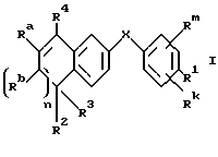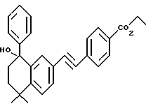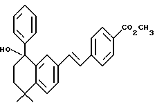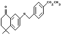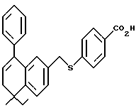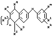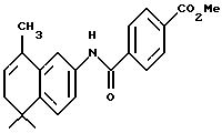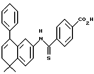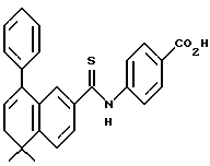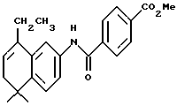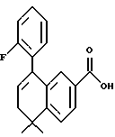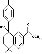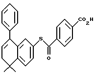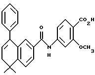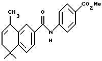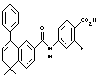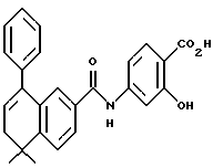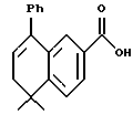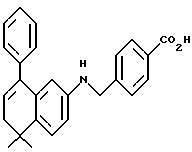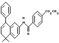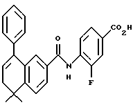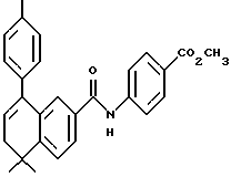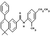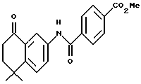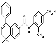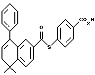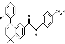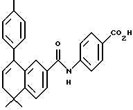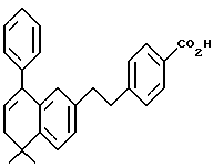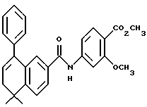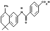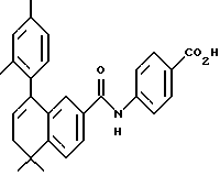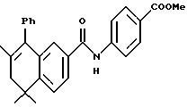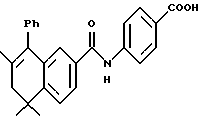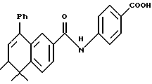 ![]() или его нетоксичная фармацевтически приемлемая соль, физиологически гидролизуемый эфир или сольват, где X обозначает -O-CO-, -NH-CO-, -CS-NH-, -CO-O-, -CO-NH-, COS-, -SCO-, -SCH2-, -CH2-CH2-, -CH2-NH-, -COCH2-, NHCS-, -CH2S-, -CH2O-, -OCH2-, -NHCH2– или -CR5=CR6-;Rm и Rk независимо друг от друга – водород или гидроксил; n = 0 или 1; R4 представляет – (CH2)t-Y или C1-C6 алкил; R1 – -CO2Z; R2 и R3 независимо друг от друга – водород или C1-C6 алкил; Ra и Rb независимо друг от друга – водород или C1-C6 алкил и, когда n = 1, Ra и Rb могут вместе образовывать радикал формулы ![]() Y – фенил, необязательно замещенный C1-C6 алкилом или галогеном; Z – водород или C1-C6 алкил; R5 и R6 независимо друг от друга – водород или C1-C6 алкил; t = 0. 2. Соединение по п.1, в котором R1 представляет -CO2H, n = 1, R2 и R3 независимо друг от друга – метил или водород, Ra и Rb независимо друг от друга – водород или C1-C6 алкил. 3. Соединение по п.2, которое является 4-[[(5,6-дигидро-,5,5-диметил-8-этил-2-нафталенил)амино]карбонил]бензойной кислотой. 4. Соединение по п. 2, которое является 4-[[(5,6-дигидро-5,5,8-триметил-2-нафталенил)амино]карбонил]бензойной кислотой. 5. Соединение по п.2, которое является 4-[[(5,6-дигидро-5,5-диметил-8-фенил-2-нафталенил)амино]карбонил]бензойной кислотой. 6. Соединение по п.2, которое является 4-[[(5,6-дигидро-5,5-диметил-8-этил-2-нафталенил)карбонил]амино]бензойной кислотой. 7. Соединение по п. 2, которое является 4-[[(5,6-дигидро-5,5,8-триметил-2-нафталенил)карбонил]амино]бензойной кислотой. 8. Соединение по п.2, которое является 4-(Е)-[2-(5,6-дигидро-5,5-диметил-8-фенил-2-нафталенил)-1-пропенил]бензойной кислотой. 9. Соединение по п.2, которое является 4-[[(5,6-дигидро-5,5-диметил-8-фенил-2-нафталенил)окси]карбонил]бензойной кислотой. 10. Соединение по п.2, которое является 4-[[(5,6-дигидро-5,5-диметил-8-фенил-2-нафталенил)карбонил]амино]бензойной кислотой. 11. Соединение по п.2, которое является 4-[[(5,6-дигидро-5,5-диметил-8-фенил-2-нафталенил)карбонил]окси]бензойной кислотой. 12. Соединение по п.2, которое является 4-[[(5,6-дигидро-5,5-диметил-8-(2-фторфенил)-2-нафталенил)карбонил]амино]бензойной кислотой. 13. Соединение по п.2, которое является 4-[[(5,6-дигидро-5,5,6-триметил-8-фенил-2-нафталенил)карбонил]амино]бензойной кислотой. 14. Соединение по п.2, которое является 4-[[(5,6-дигидро-5,5,7-триметил-8-фенил-2-нафталенил)карбонил]амино]бензойной кислотой. 15. Соединение по п.2, которое является 4-[[(E)-(5,6-дигидро-5,5-диметил-8-фенил)-2-нафталенил]винил]бензойной кислотой. 16. Соединение по п.2, которое является 4-[[[(5,6-дигидро-5,5-диметил-8-фенил)-2-нафталенил]карбонил]сульфамил]бензойной кислотой. 17. Соединение по п.2, которое является 4-[[[(5,6-динидро-5,5-диметил-8-фенил)-2-нафталенил]сульфамил]карбонил]бензойной кислотой. 18. Соединение по п.2, которое является 4-[[(5,6-дигидро-5,5-диметил-8-фенил)-2-нафталенил]этил]бензойной кислотой. 19. Соединение по п.2, которое является 4-[[[(5,6-дигидро-5,5-диметил-8-фенил)-2-нафталенил]тиокарбонил]амино]бензойной кислотой. 20. Соединение по п.2, которое является 4-[[[(5,6-дигидро-5,5-диметил-8-фенил)-2-нафталенил]карбонил]метил]бензойной кислотой. 21. Соединение по п.2, которое является 4-[[[(5,6-дигидро-5,5-диметил-8-фенил)-2-нафталенил]метил]окси]бензойной кислотой. 22. Соединение по п.2, которое является 4-[[[(5,6-дигидро-5,5-диметил-8-фенил)-2-нафталенил]окси]метил]бензойной кислотой. 23. Соединение по п.2, которое является 4-[[[[5,6-дигидро-5,5-диметил-8-(2,4-диметилфенил)]-2-нафталенил]карбонил]-амино]-бензойной кислотой. 24. Соединение по п.2, которое является 4-[[[[5,6-дигидро-5,5-димети