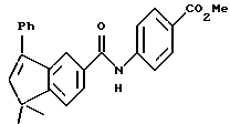 ПРИМЕР 30Метиловый эфир 4-[[(5,6-дигидро-5,5,8-триметил-2-нафталенил) карбонил] амино]бензойной кислоты (I3c) ![]() При использовании метода, аналогичного методу получения (8-фенил)-производного I3a, из 154 мг (0,713 ммоль) соединения XVIIIc получили 90 мг (выход 36%) указанного в заголовке соединения; 1H-ЯМР (CDCl3): 8,05 (д, J= 8,5 Гц, 2Н), 7,90 (ушир.с, 1Н), 7,75 (д, J=8,5 Гц, 2Н), 7,75 (д, J=2,0 Гц, 1Н), 7,65 (дд, J= 8,0, 2,0 Гц, 1Н), 7,43 (д, J=8,0 Гц, 1Н), 5,87 (м, 1Н), 3,92 (с, 3H), 2,27 (м, 2Н), 2,18 (д, J=l,3 Гц, 3H), 1,30 (с, 6Н); MS (DCI) m/e: 350 (МН+).