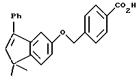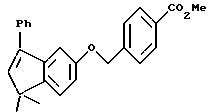ПРИМЕР 1374-[1,1-Диметил-3-фенил-1Н -инден-5-илоксиметил]бензойная кислота (I32a) ![]() Метиловый эфир 4-[1,1-диметил-3-фенил-1Н -инден-5- илоксиметил]бензойной кислоты (300 мг, 0,78 ммоль) и 3,9 мл 2 н. NaOH в 5 мл тетрагидрофурана и 5 мл метанола перемешивали при комнатной температуре в течение 16 часов. Раствор упаривали и подкисляли 1 н. HCl (10 мл), экстрагировали этилацетатом (20 мл х 3). Объединенные экстракты промывали водой (10 мл), сушили над сульфатом магния и выпаривали. Остаток кристаллизовали из смеси эфира с гексаном с получением 247 мг (выход 85%) указанного в заголовке соединения в виде твердого вещества белого цвета; 1H-ЯМР (ДМСО-d6): 1,31 (с, 6Н), 5,20 (с, 2Н), 6,57 (с, 1Н), 6,89 (дд, J=1,1, 8,2 Гц, 1Н), 7,02 (д, J=1,1 Гц, 1Н), 7,36-7,57 (м, 8Н), 7,95 (д, J=8,3 Гц, 2Н), 12,94 (ушир.с, 1H); MS m/e: 371 (МН+).