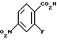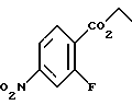 ПРИМЕР 147Этиловый эфир 2-фтор-4-нитробензойной кислоты ![]() К раствору 2-фтор-4-нитробензойной кислоты (1,15 г, 6,22 ммоль) в абсолютном этиловом спирте (20 мл) добавляли моногидрат п-толуолсульфоновой кислоты (100 мг). После нагревания с обратным холодильником в течение 16 ч реакционную смесь упаривали в вакууме и остаток хроматографировали на силикагеле (элюируя 5% этилацетатом в гексане) с получением 770 мг (выход 58%) указанного в заголовке продукта; 1H-ЯМР (CDCl3): 8,16-8,00 (м, 3H), 4,45 (кв, J=7,1 Гц, 2Н), 1,43 (т, J=7,1 Гц, 3H). MS (DCI) m/e: 214 (МН+).