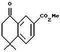 ПРИМЕР 34,4-Диметил-7-нитро-1-тетралон (VI) Указанное в заголовке соединение получали согласно методике Heck & Winstein, J. Org. Chem., Vol. 37, N 6, 1972, p. 825; 1H-ЯМР (CDCl3): 8,84 (д, J=2,5 Гц, 1H), 8,36 (дд, J=7,0 Гц, 2,5 Гц, 1H), 7,62 (д, J=7,0 Гц, 2Н), 2,80 (т, J=7,0 Гц, 3Н), 2,08 (т, J=7,0 Гц, 3Н), 1,45 (с, 6Н); MS (DCI) m/e: 220 (МН+).