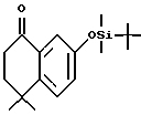 ПРИМЕР 354,4-Диметил-7-[(трет-бутилдиметилсилил) окси]-1-тетралон (XXIа) ![]() К раствору соединения XIV (2,00 г, 10,5 ммоль) в диметилформамиде (16 мл) добавляли трет-бутилдиметилсилил-хлорид (1,90 г, 12,6 ммоль) и имидазол (1,79 г, 26,3 ммоль) при комнатной температуре. Через 5 часов добавляли 5% NaHCO3 (50 мл) и смесь экстрагировали гексаном (2 х 75 мл). Объединенные органические фазы сушили над безводным сульфатом магния и упаривали в вакууме с получением 3,22 г (выход 99%) указанного в заголовке соединения; 1H-ЯМР (CDCl3): 7,44 (д, J=2,8 Гц, 1Н), 7,29 (д, J=8,7 Гц, 1Н), 7,01 (дд, J=8,7, 2,8 Гц, 1Н), 2,71 (т, J=7,0 Гц, 2Н), 1,99 (д, J=7,0 Гц, 2Н), 1,36 (с, 6Н), 0,98 (с, 9Н), 0,20 (с, 6Н); MS (DCI) m/e: 305 (МН+).