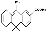 ПРИМЕР 61Метиловый эфир 10,10-диметил-9-оксо- 5,8,8а,9,10,10a-гексагидроантрацен-2-карбоновой кислоты (XXXVIIa) ![]() Раствор енона XXXa (500 мг, 2,17 ммоль) и хлорида алюминия (260 мг, 1,95 ммоль) в 10 мл безводного толуола насыщали 1,3-бутадиеном при -78oC. После перемешивания при комнатной температуре в течение 18 часов смесь разбавляли 20 мл 1 н. HCl и экстрагировали EtOAc (30 мл х 3). Объединенные экстракты промывали водой (20 мл), насыщенным хлоридом натрия и сушили над сульфатом магния. Растворитель выпаривали и остаток очищали при помощи флэш-хроматографии на силикагеле (элюируя смесью EtOAc:гексан в соотношении от 1:20 до 1: 5) с получением 638 мг (количественный выход) указанного в заголовке продукта в виде масла; 1H-ЯМР (CDCl3): 1,45, 1,49 (с, 3H каждый); 1,60-1,75 (м, 1Н), 2,10-2,30 (м, 3H), 2,99-3,06 (ушир.д, J=18 Гц, 1Н), 3,29 (ушир. с, 1Н), 3,91 (с, 3H), 5,53-5,58 (м, 1Н), 5,70-5,76 (м, 1Н), 7,46 (д, J= 8,2 Гц, 1Н), 8,16 (дд, J=1,8, 8,2 Гц, 1Н), 8,64 (д, J=1,8 Гц, 1Н); MS (DCI) m/e: 285 (МН+).