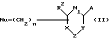 Изобретение относится к новым производным азабициклоалканов, обладающих биологической активностью, в частности к производным N-замещенных 3-азабицикло[3.2.0] гептанов и к фармацевтической композиции с антипсихотической активностью на их основание. Известны производные N-замещенных азабициклогептанов, обладающих антипсихотической активностью (см. заявку DE N 4219973, кл. С 07 D 209/52, A 61 К 31/40, 23.12.1993 г.). Задачей изобретения является расширение арсенала производных N-замещенных 3-азабицикло[3.2.0]гептанов, обладающих антипсихотической активностью. Поставленная задача решается предлагаемыми производными N-замещенных 3-азабицикло[3.2.0]гептанов формулы I ![]() где R1 означает нафтильную или фенантрильную группу, которые могут быть моно- или дизамещены атомами галоида, n означает числа 1, 2, 3 или 4, R2 означает алкильную группу с 1-4 атомами углерода, или вместе с соседним атомом углерода означает карбонильную группу, X и Y означают атомы углерода, N-алкильные группы с 1-4 атомами углерода, -NH- или атомы азота, Z означает прямую связь, карбонильную группу или CH-группу, А означает алкиламиногруппу с 1-4 атомами углерода, или А вместе с Y является частью приконденсированного тиазольного, пиридиного или бензольного кольца, которое может быть замещено 1-3 атомами Cl или F, и их соли с физиологически приемлемыми кислотами. В качестве заместителей R1 и R2, а также n можно, в частности, назвать следующие значения: R1 – нафтил, который может быть замещен фтором или хлором, R2 – метил, n-2. Кольцевая система в правой части формулы 1 может быть, в частности, выражена следующими формулами: ![]() ![]() ![]() или ![]() Предпочтительными являются, в частности, соединения, у которых циклическая система в правой части является производной от 7-метил-5Н-тиазоло[3,2-а]пиримидин-5-она, 2,4-(1H, 3H)-хиназолидиндиона, 2-метил-амино-3,6-диметил-4 (3H) пиримидинона, или бензимидазолона. Соединения формулы I согласно изобретению получают тем, что соединение формулы II ![]() в которой n, R2, X, Y и А имеют указанные выше значения и Nu является нуклеофильной отходящей группой, подвергают взаимодействию с производным 3-азабицикло[3.2.0]гептана формулы III ![]() где R1 имеет указанное выше значение, и полученное соединение при необходимости переводят в соль обработкой физиологически приемлемой кислотой. Нуклеофильной отходящей группой являются, предпочтительно, атомы галоида, в частности бром или хлор. Взаимодействие целесообразно проводить в присутствии инертного основания, такого как триэтиламин или карбонат калия, в качестве связывающего кислоту средства и в инертном растворителе, таком как циклический насыщенный простой эфир, в частности тетрагидрофуран или диоксан, или углеводород бензольного ряда, такой как толуол или ксилол. Взаимодействие происходит, как правило, при температуре от 20 до 150oC, в частности от 80 до 140oC, и заканчивается обычно в течение 1-10 часов. Соединения формулы 1 согласно изобретению очищают или перекристаллизацией из обычных органических растворителей, предпочтительно низших спиртов, таких как этанол, или колоночной хроматографией. Рацематы разделяют на энантиомеры простым способом классического расщепления с оптически активными карбоновыми кислотами, например производными винной кислоты, в инертном растворителе, например низших спиртах. Свободные производные 3-азабицикло [3.2.0.) гептана формулы 1 могу