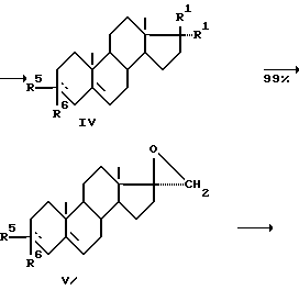 (IV, 3-этиленкеталь циангидрина АД, R1=CN, R2=OH и R5 и R6 вместе 1,2- диоксолановый цикл)К суспензии 20 г циангидрина АД (II) в 20 мл этиленгликоля добавляют 40 мл 30% раствора метилортоформиата в метаноле и 0,4 г n-толуолсульфокислоты. Реакционную массу нагревают до 60oC и перемешивают 2 ч. По окончании реакции реакционную массу охлаждают до 25oC и добавляют 0,6 мл триэтиламина (pH 8-9). Реакционную массу охлаждают до температуры 0…-5oC и перемешивают 2-3 ч. Осадок отфильтровывают, промывают на фильтре метанолом, сушат. Получают 19 г 3-этиленкеталя циангидрина АД с выходом 83,6% и температурой плавления 218-220oC. Пример 10. (V, 3-этиленкеталь оксирана, R5 и R6 вместе 1,2- диоксолановый цикл)К смеси 7,2 г 3-этиленкеталя циангидрина АД и 6,8 г триметилсульфонийбромида в 145 мл диметилсульфоксида добавляют 7,2 г порошкообразного едкого натра. Суспензию перемешивают в течение 10 ч при температуре 60oC. Затем к реакционной массе медленно добавляют 200 мл воды, массу охлаждают до комнатной температуры. Осадок отфильтровывают, промывают водой. Получают 6,52 г 3-этиленкеталя оксирана с выходом 94% и температурой плавления 186-189oC. [ ]3D5 = -60 (с=1 в хлф.).