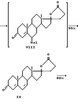 Кроме того, в реакции галоидирования в качестве агента можно использовать дибромантин или N- или N-бромсукцинимид, а дегидрогалоидирование проводят в среде апротонного растворителя с помощью солей щелочных и щелочноземельных металлов.
