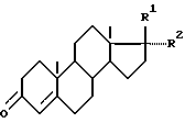 Пример 6. Андрост-4-ен-3,17-дион(II, АД, R1 и R2 вместе кетогруппа)Культуру Mycobacterium smegmatis ВКПМ Ac-1552 в 6-дневном возрасте, выросшую на агаровой среде следующего состава (в г/л): глюкоза – 10, соевая мука – 3, лимонная кислота – 2,2, мочевина – 0,5, дигидрофосфат калия – 0,5, хлорид аммония -1, сульфат магния – 0,5, сульфат железа – 0,05, агар-агар ~ 25, вода дистиллированная, pH до стерилизации – 6,8-7,0, переносят в 30 мл жидкой посевной среды в конические плоскодонные колбы вместимостью 250 мл. Состав посевной среды (г/л): глюкоза – 10, соевая мука – 3, мочевина – 0,5, лимонная кислота – 2,2, хлорид аммония -1, дигидрофосфат калия – 0,5, сульфат железа – 0,05, сульфат магния – 0,5, карбонат кальция – 1,5, вода дистиллированная, pH до стерилизации – 7,0. Инкубируют 48 ч на качалке при интенсивном перемешивании 220 об/мин (эксцентриситет 5 см) и температуре 30oC. Выращенную культуру вносят в количестве 10 об.% в среду следующего состава (г/л): глюкоза – 10, соевая мука – 10, мочевина – 0,5, гидрофосфат аммония – 1,5, лимонная кислота – 2,2, сульфат магния – 0,2, сульфат железа – 0,05, карбонат кальция – 1,5, вода дистиллированная, pH до стерилизации – 7,0. Среду разливают в аналогичные колбы по 30 мл. До стерилизации в среду добавляют хорошо гомогенизированный холестерин в количестве 1% (концентрация 10 г/л). Ферментацию проводят на качалке в условиях, описанных для получения вегетативного посевного материала, в течение 96 4 ч. По окончании ферментации (концентрация АД – 7,0 г/л по данным ВЭЖХ анализа) культуральную жидкость отделяют от биомассы на центрифуге. Биомассу экстрагируют водным ацетоном (60-65% содержания).