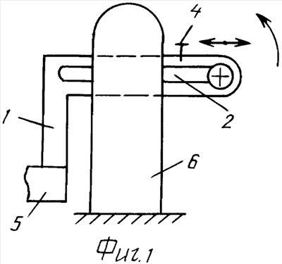 При открывании крышки 5 отвинчивается стопорный винт 4 и подвижный держатель 3, находящийся в пазу 2, отводится до упора. Воздействуя на держатель, Г-образный рычаг 1 можно привести в круговое движение относительно петель 6, в результате чего закрепленная на конце рычага крышка легко открывается.