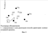На основе построенной геолого-математической модели и последующей ее адаптации с использованием базы данных геологического строения участка, а также работы добывающих и нагнетательных скважин с начала разработки, оценивалось текущее на 12.2004 г. исходное (до применения способа) поле нефтенасыщенности (рис.2), в соответствии с которым для волнового воздействия с инициированием дополнительной трещиноватости с повышением забойного давления и осуществлением гидроразрыва в мало выработанной зоне выбрана добывающая наклонная скважина 4754. При реализации способа в скважине осуществляли комплекс мероприятий по очистке ПЗП и инициированию трещинообразования с применением гидродинамических генераторов ГДВ2В-20, ГДВ2В-30 и струйных насосов комплекса “СТРЭНТЭР” НПП “Ойл-Инжиниринг”. Вокруг скважины в четырех точках поверхности, в углах квадрата со сторонами 500 м и центром-устьем скважины, установлены четыре 3х-компонентных геофонов. Акустический датчик измерительного комплекса ВШВ-003-М3 с аналого-цифровым преобразователем (АЦП) Е-330 установлен на верхней части НКТ. Для цифровой записи сигналов применялись персональные компьютеры. В январе 2005 г. в скважине одновременно с волновым воздействием произвели гидроразрыв пласта для создания протяженной трещины с закачкой 18,2 тонн проппанта. Мониторинг процесса по контролю изменения сейсмоакустической эмиссии (САЭ) показал северо-западную ориентацию трещины длиной порядка 90 м в продуктивной части (фиг.3). Последующими гидродинамическими исследованиями скважины длина трещины уточнена и составила 87 м.