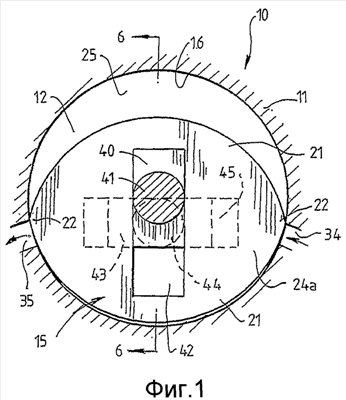 фиг.6 – поперечное сечение первого варианта роторного устройства по линии 6-6 с фиг.1, при этом фиг.1 представляет собой поперечное сечение по линии 1-1 с этого чертежа;