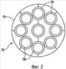фиг.2 – поперечное сечение, сделанное по линии 2-2, пульсирующей детонационной форсажной камеры, используемой совместно с двухступенчатым пульсирующим детонационным устройством, показанным на фиг.1;