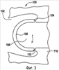 На фиг.3 показано сечение части двухступенчатого пульсирующего детонационного устройства 100. Как рассматривалось выше, углеводородное топливо смешивается с воздухом с получением обогащенной топливом смеси, которая сжигается в предкамере 102 сгорания при постоянном давлении. Получившаяся в результате смесь частично сгоревшего топлива и оставшиеся после сжигания компоненты проходят через сопло 104 Лаваля, где дополнительно смешиваются со вспомогательным воздухом, выходящим из отверстий 112, с образованием равных количеств топлива и смеси. Получившаяся в результате смесь проходит в геометрический резонатор 106, имеющий цилиндрическую поверхность 108, отражающую волны давления. Двухкаскадное пульсирующее детонационное устройство также включает в себя сопло 110 на выходе резонатора для передачи сдетонировавшей смеси топлива с воздухом к выходу сопла на выходе резонатора и к выходу двигателя (непоказанного). Поверхность 108, отражающая волны давления, имеет форму двумерной криволинейной поверхности с фокальной точкой F, в которой в геометрическом резонаторе 106 фокусируется отраженная волна давления. Форма соответствует части цилиндра, имеющего продольную ось, проходящую через фокальную точку F.