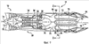 фиг.1 – вид сбоку в разрезе турбовентиляторного двигателя, включающего в себя двухступенчатое пульсирующее детонационное устройство;