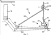 На передней части этого вращающегося вала 10 размещается оборудование 12, например лопатки вентилятора, причем свободные концы этих лопаток проходят в непосредственной близости от кожуха 14, охватывающего ступень вентилятора.