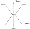 На фиг.4 показана характеристика работы струйного блока регулятора, отражающая зависимость изменения выходных давлений от величины перепада давления в его каналах управления.